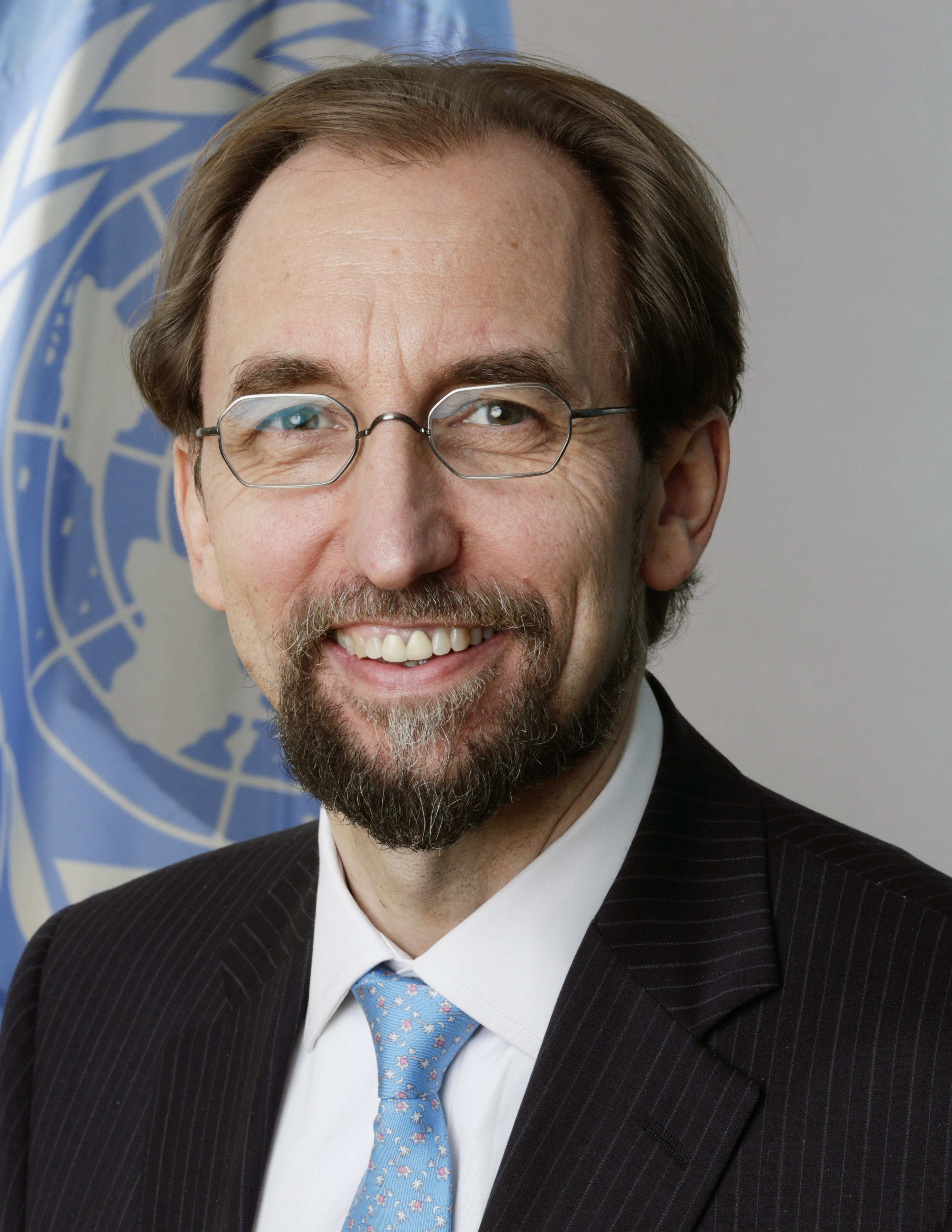 Portrait of HRH Prince Zeid, HC Designate (and passport photos)Á sama tíma er maður á efri hæð hússins að flytja ræðu. Yfirmaður mannréttindamála Sameinuðu þjóðanna hrífur salinn með sér þegar hann ræðir þá áráttu valdhafa að þagga niður andóf og þar sem ástandið er verst fangelsa þeir andófsfólk fyrir rangar sakir, pynta það og jafnvel drepa. Það drýpur af honum elegansinn enda er hann prins þótt ekki megi nota slíkan titil um yfirmann hjá alþjóðastofnun. Athygli allra beinst að  Zeid Ra’ad Al Hussein, sem tók við þessu mikilvæga embætti í september 2014. Í föðurætt er hann af Hashemita-konungsfjölskyldunni af Írak og Sýrlandi en móðir hans er af sænskum aðalsættum. Hann er vel menntaður, vel máli farinn, vel kvæntur, vel klæddur og með fallega framkomu.