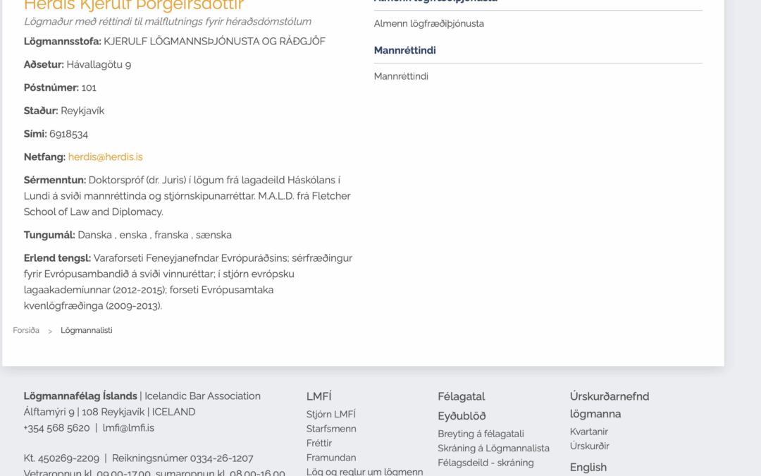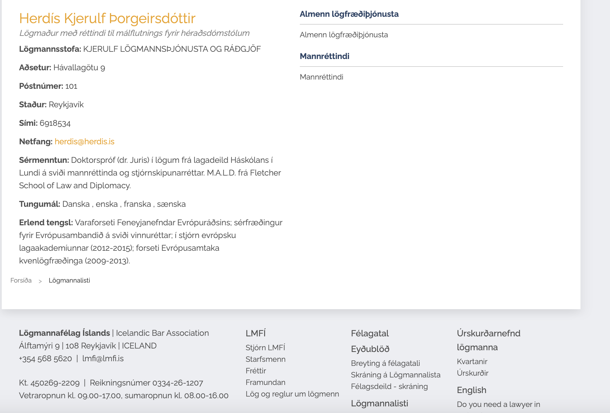 Lögmannsþjónusta og ráðgjöfDr. Jur. Herdís Kjerulf Þorgeirsdóttir hdl. MALD+354 691 8534 / herdis@herdis.is