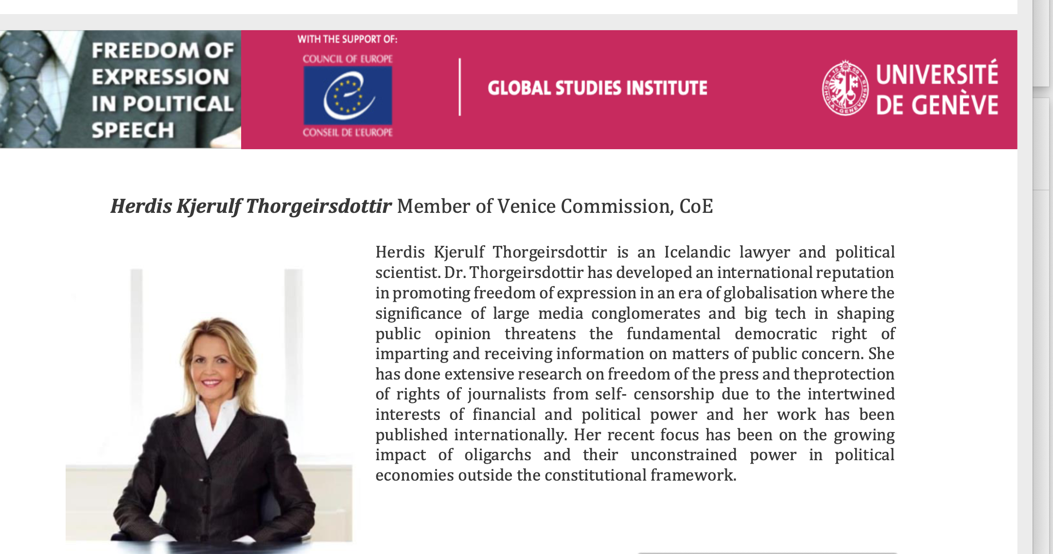 Flutti erindi á ráðstefnu um tjáningarfrelsi við Genfarháskóla þar sem ég ræddi m.a. mikilvægi pólitískrar umræðu, samfélagsmiðla og