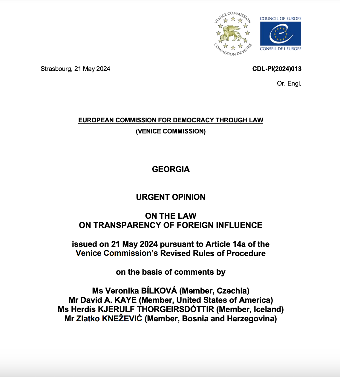 https://www.euronews.com/2024/05/22/georgia-should-scrap-foreign-influence-law-council-of-europe?fbclid=IwZXh0bgNhZW0CMTAAAR0-XKbQVGLww92BwkysdjTrldtws9Rn47QBzvp3xfLVMzpxQk4HFOhKgAA_aem_AZ2ETreZ71jLMLct75lVpikIPPg8FgDfJ_tQeZ_2v95NglGVgERDjk2HUNeJ07ZXpCdsCxuiI13WCCVtP4eHlRLd
