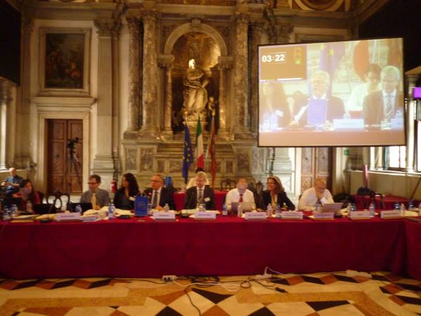 Konur á aðalfundi Feneyjanefndar í júni 2015. Frá vinstri Wilhelmina Thomasen varafulltrúi Hollands í nefndinni og fyrrum dómari við Mannréttinadómstól Evrópu; Simona Granata-Menghini aðstoðar framkvæmdastjóri Feneyjanefndar, Sarah Cleveland fulltrúi Bandaríkjanna í Fenyjanefnd; Anne Peters varafulltrúi Þýskalands, Lydie Err, fulltrúi Luxemborgar, Gordana Siljanovska-Davkova fullrúi fyrrum júgóslaveska lýðveldisins Makedóníu; Herdís Þorgeirsdóttir fulltrúi Íslands og varaforseti nefndarinnar, Hanna Suchocka fyrrum forsætisráðherra Póllands og nú prófessor í lögum við háskólann í Gdansk, fulltrúi Póllands í nefndinni; Veronika Bilkova, fulltrúi Tékklands og Amaya Ubeda, starfsmaður Feneyjanefndar í Strassborg.