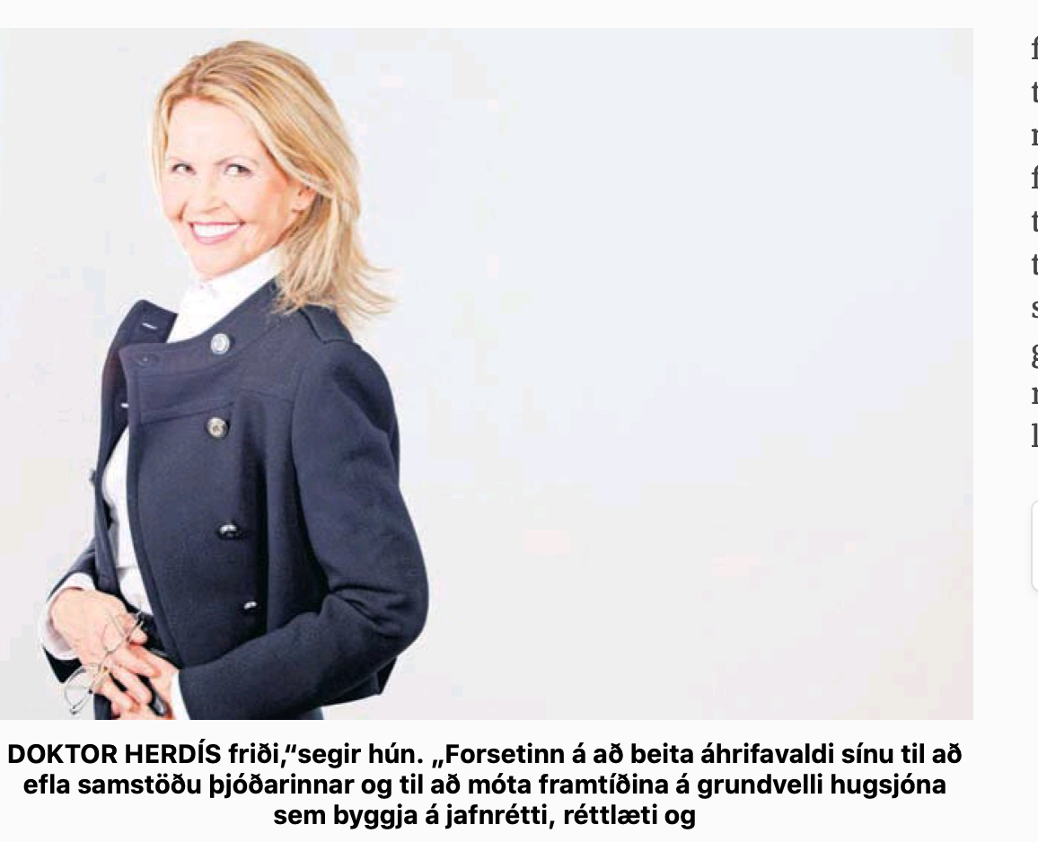 Þjóðin hefur aldrei þurft meira á því að halda en nú að forseti Íslands sé öflugur málsvari mannréttinda og lýðræðis. Ég er óhrædd á þeim vettvangi og tel að forseti sem leggur áherslu á þær hugsjónir muni starfa í sátt við þjóðina.