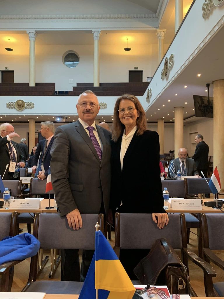 Meðfylgjandi mynd er af Serhyi Holovaty, forseta Stjórnlagadómstóls Úkraínu og Herdísi Kjerulf Þorgeirsdóttur, varaforseta Feneyjanefndar. Sjá hér umfjöllun um ráðstefnuna á heimasíðu Stjórnlagadómstóls Úkraínu.