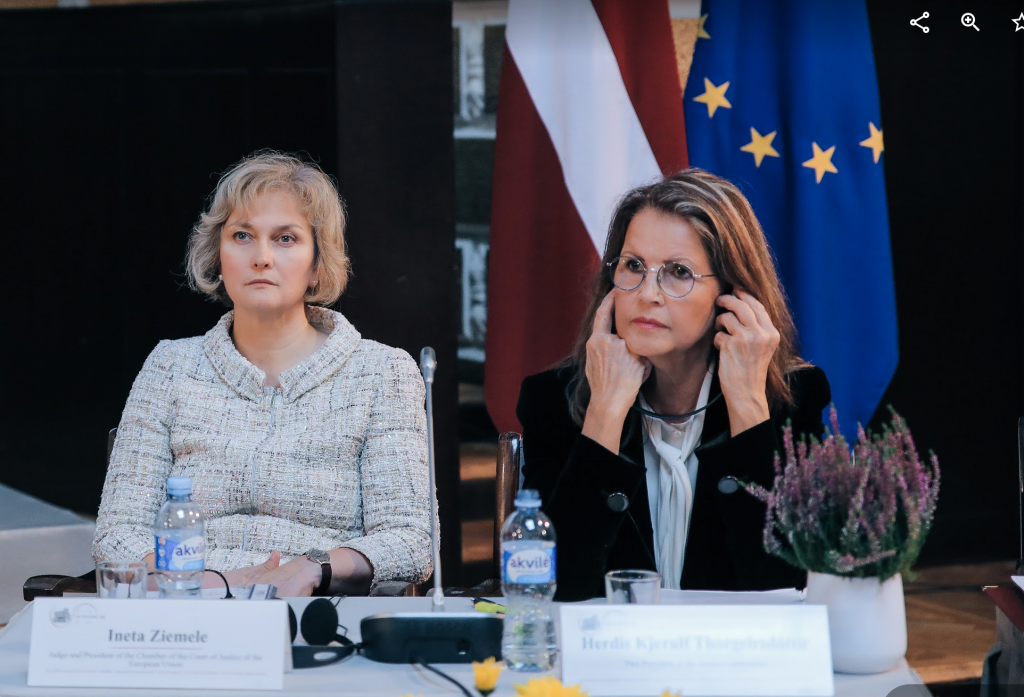 Á meðfylgjandi mynd eru dómari Finnlands við Mannréttindadómstól Evrópu, dómari við stjórnlagadómstól Úkraínu, Herdís og forseti Lettlands.