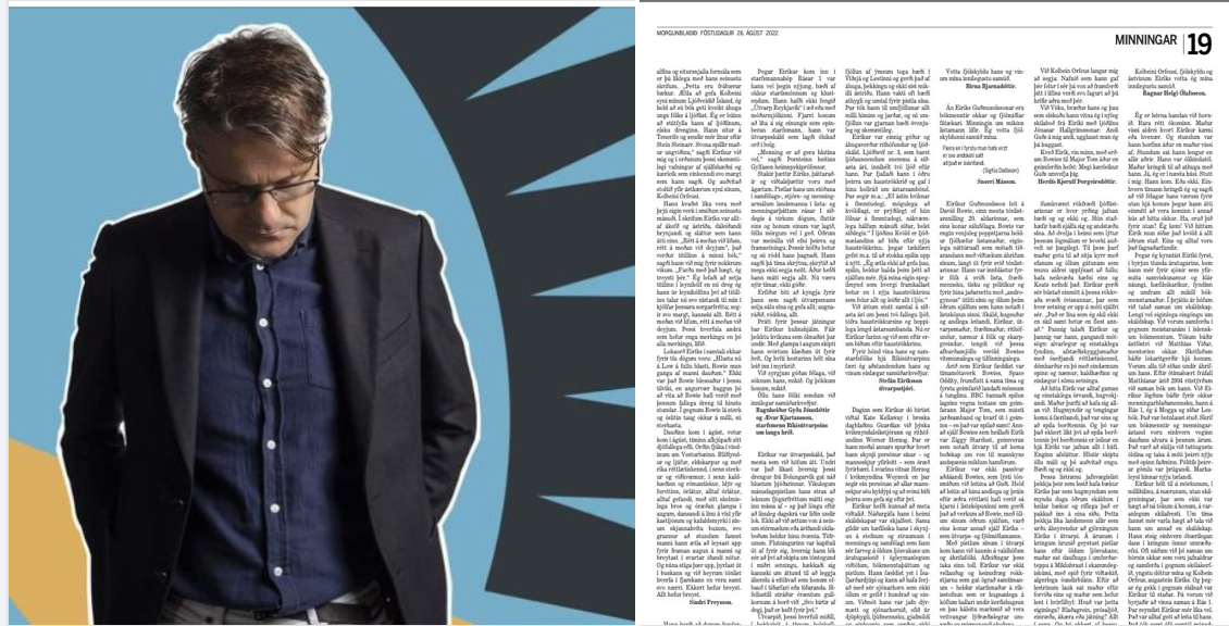 Eiríkur var ekki passívur aðdáandi Bowies, sem lýsti tónsmíðum við leitina að Guði. Held að leitin að hinu andlega og þráin eftir æðra réttlæti hafi verið sá kjarni í listsköpuninni sem gerði það að verkum að Bowie, með öllum sínum öðrum sjálfum, varð eins konar annað sjálf Eiríks – sem útvarps- og fjölmiðlamanns.
