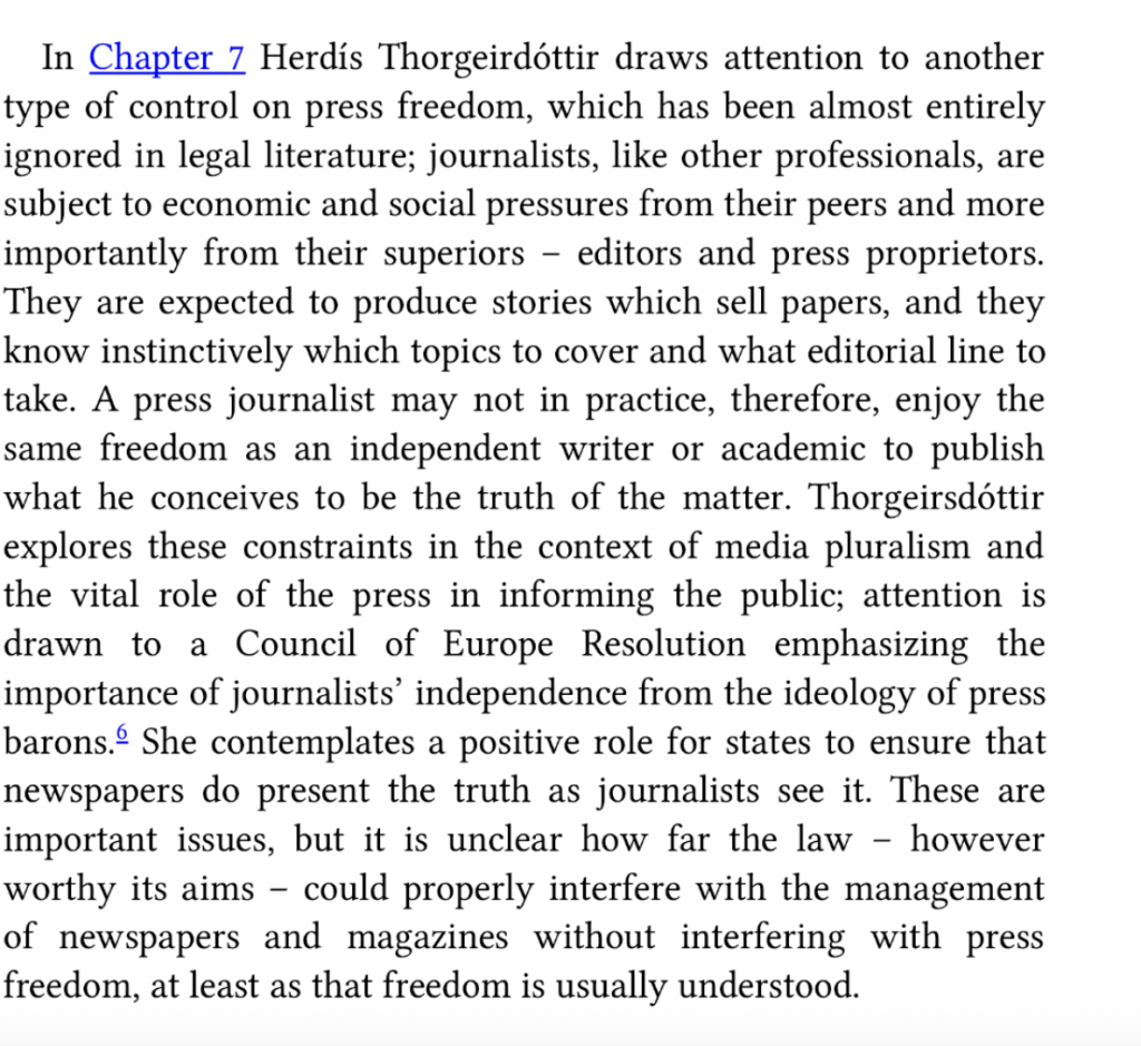 Bringing together the most seminal articles written by leading international experts, this volume discusses all aspects of freedom of the press. The papers in the first part of this volume discuss the meaning of press freedom and its relationship to freedom of speech, while those in the second part discuss the extent to which self-regulation is a satisfactory alternative to legal controls. The essays in parts III and IV explore the various solutions adopted in the USA and in some Commonwealth countries to balancing the freedom of the press and other media against the laws of libel and privacy. They discuss, among other issues, the question whether courts should apply the same constitutional principles to privacy actions as those developed in libel law and how far celebrities are entitled to claim privacy rights when they are photographed in public places.