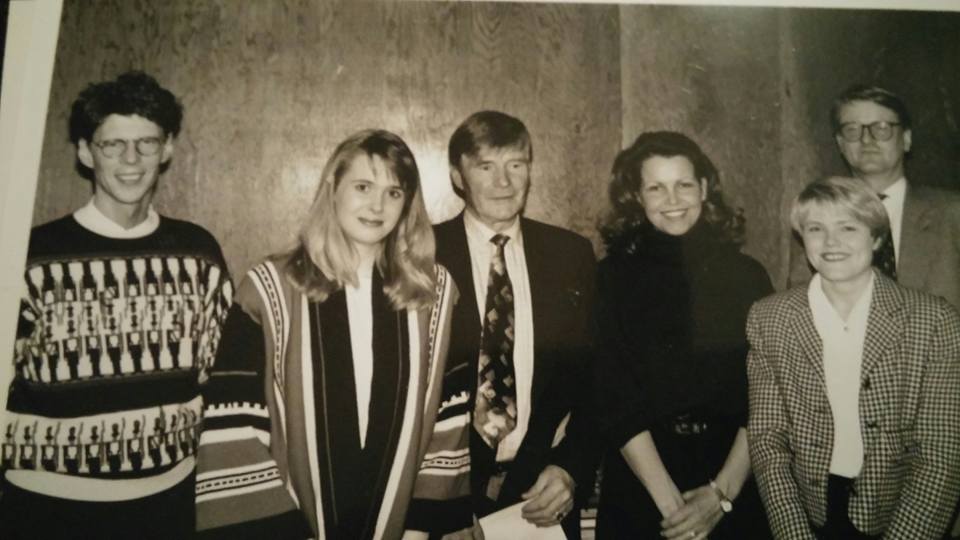 Á fundi í Aðalstræti 4 á Heimsmyndarárunum. Myndin er tekin 1991. Frá vinstri Sigurður Gísli Pálmason, Ragnhildur Erla Bjarnadóttir, Pétur Björnsson, Herdís Þorgeirsdóttir, Hildur Grétarsdóttir og Kristinn Björnsson, sem gegndi stjórnarformennsku í Ófeigi hf., sem gaf út Heimsmynd frá 1986-1993.