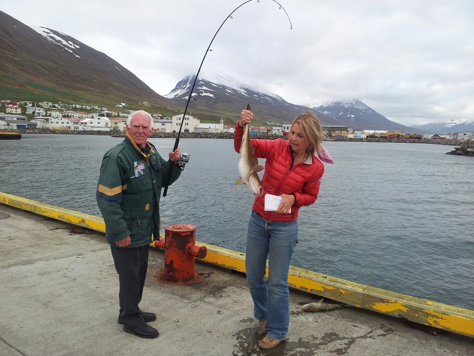 Mynd tekin á Ólafsfirði í júní 2012 og er alveg ótengd efninu. Eldri maður að veiða á bryggjunni og frambjóðandi á hringferð um landið.
